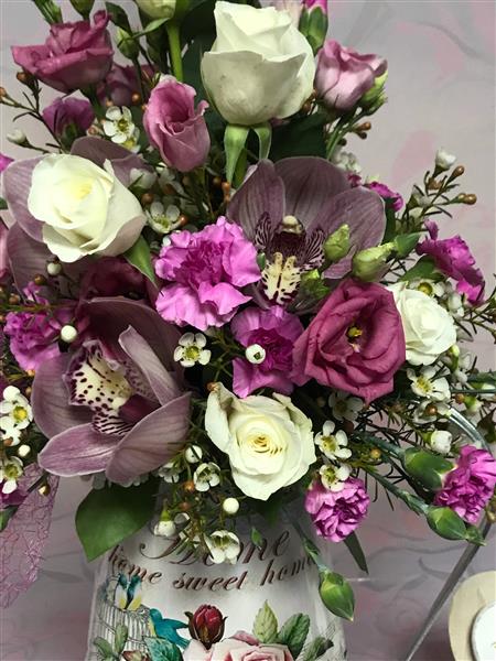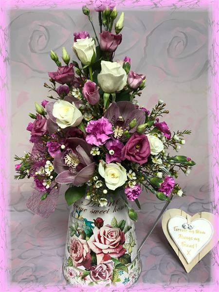 A beautiful jug arrangement of seasonal flowers, colours and sizes may vary. Please indicate choice of colours.Also Jug may have different pattern from picture depending on stock